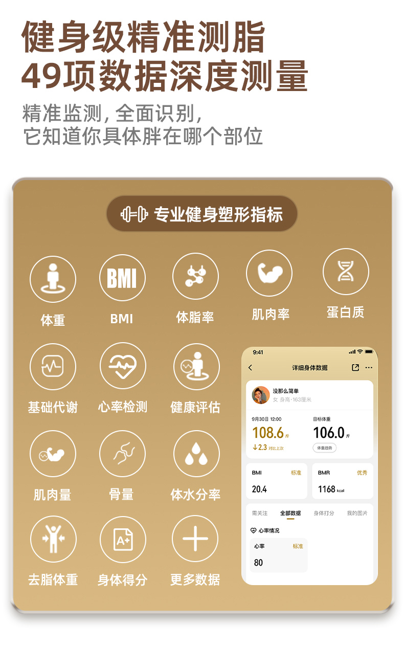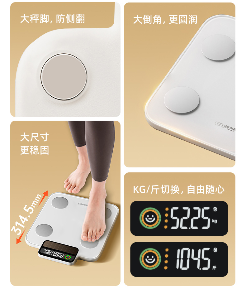 光能充电·健身级精准称重测脂