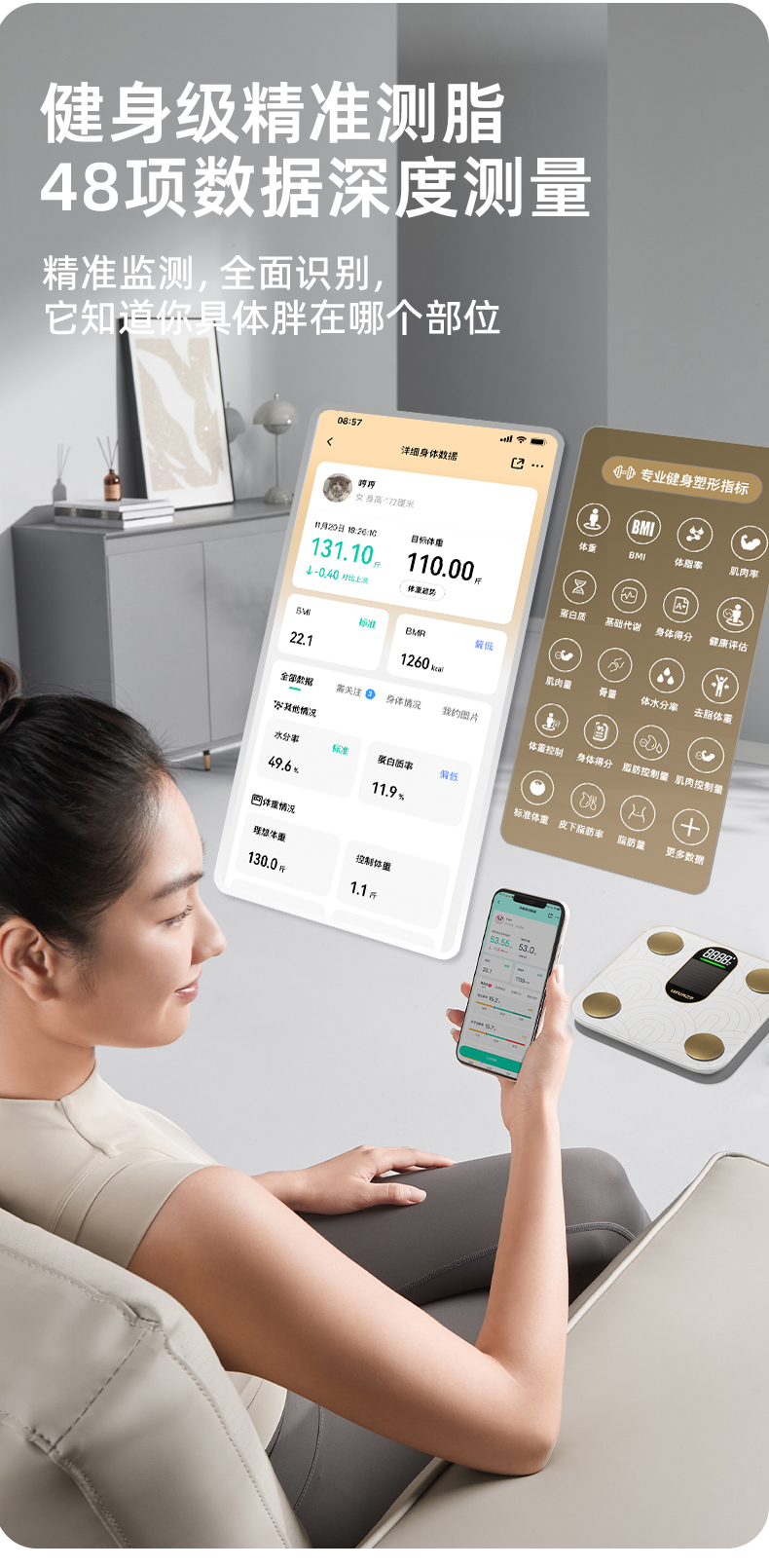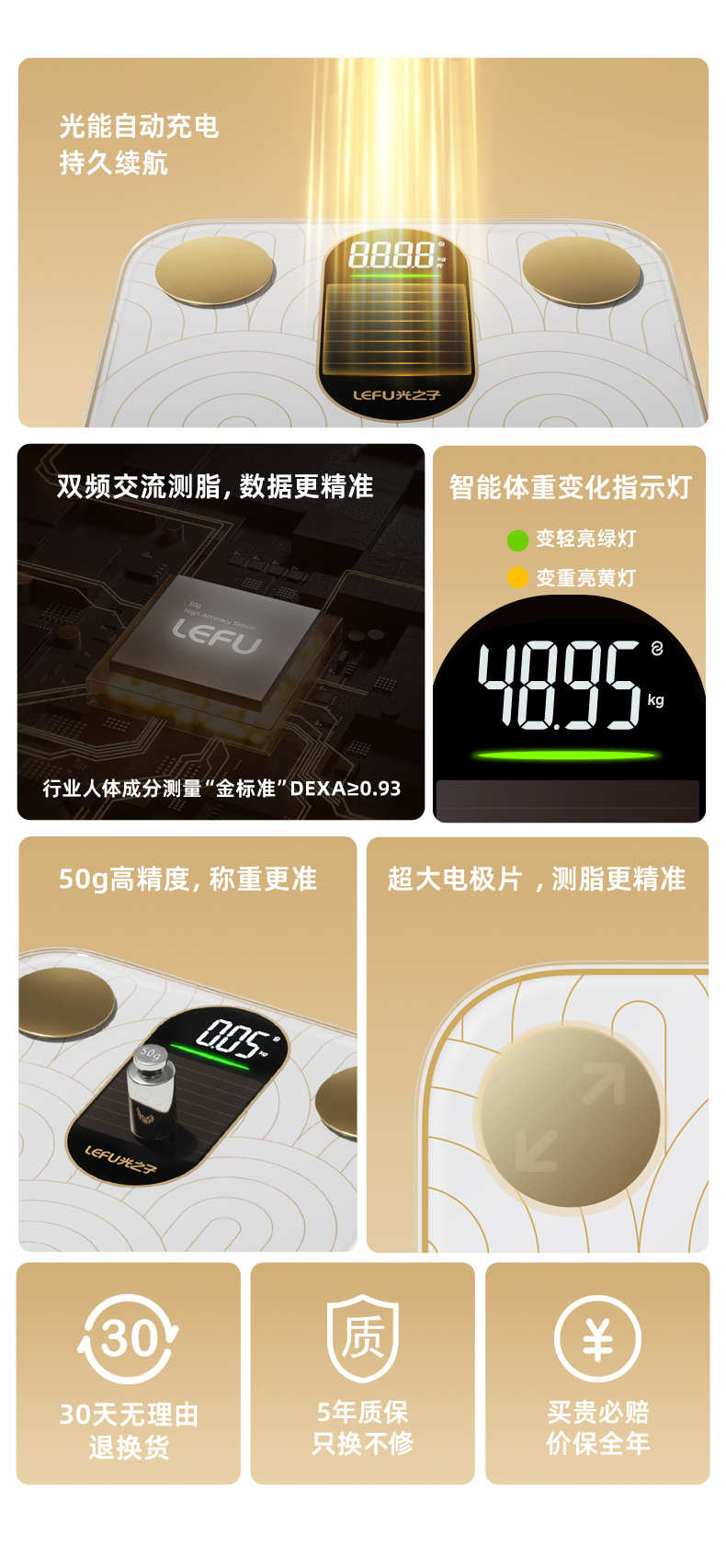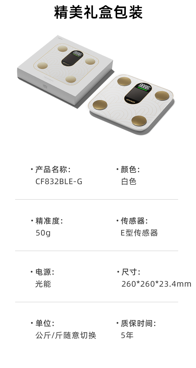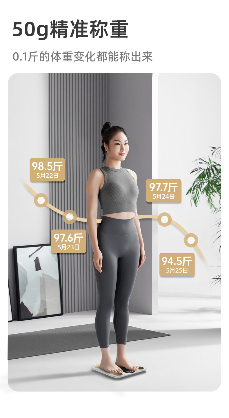 光能充电·健身级精准称重测脂